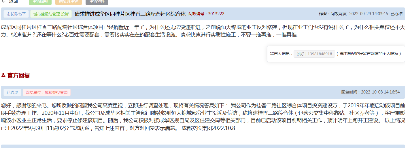 住房和城乡建设厅转派至成都市成华区