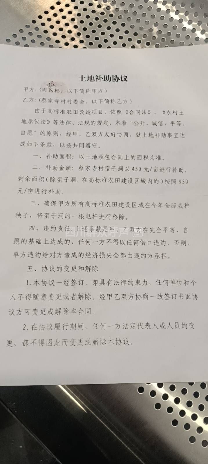 [求助] 与村委签的土地补助协议何时兑现