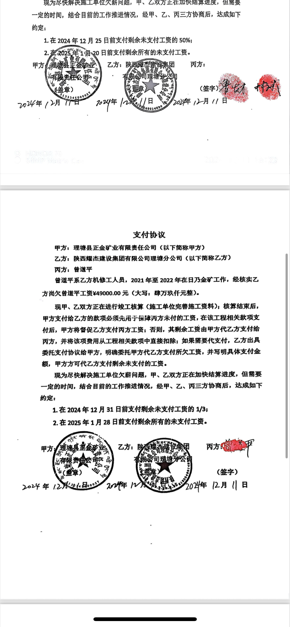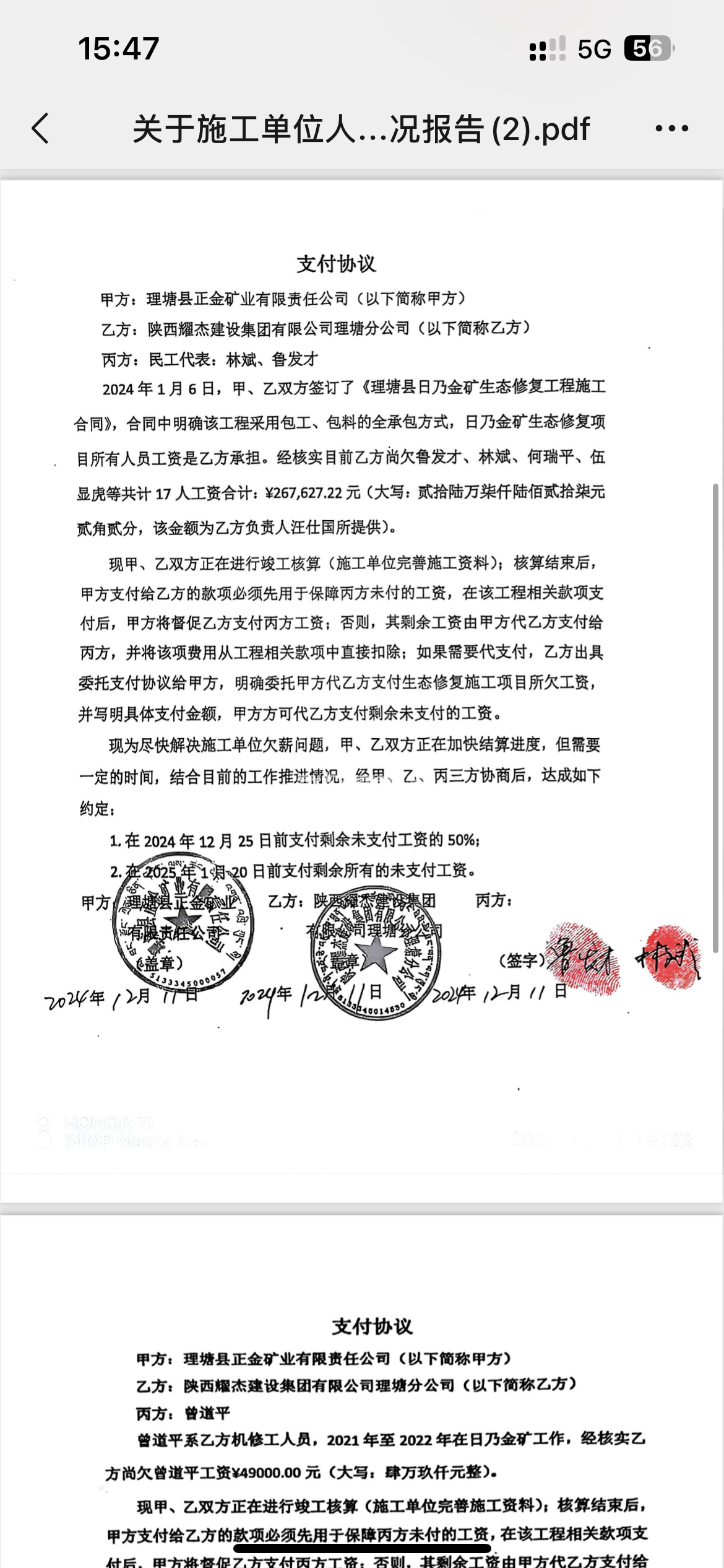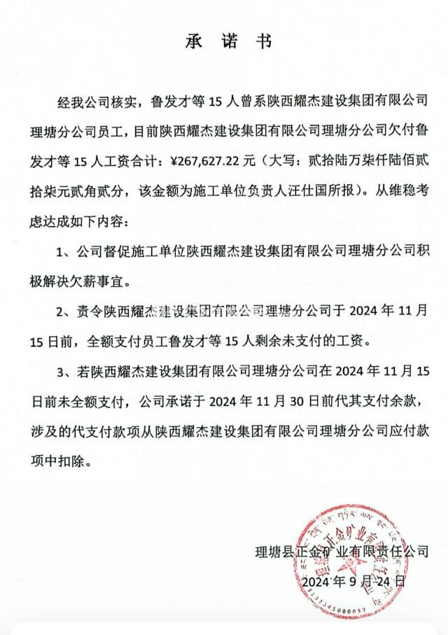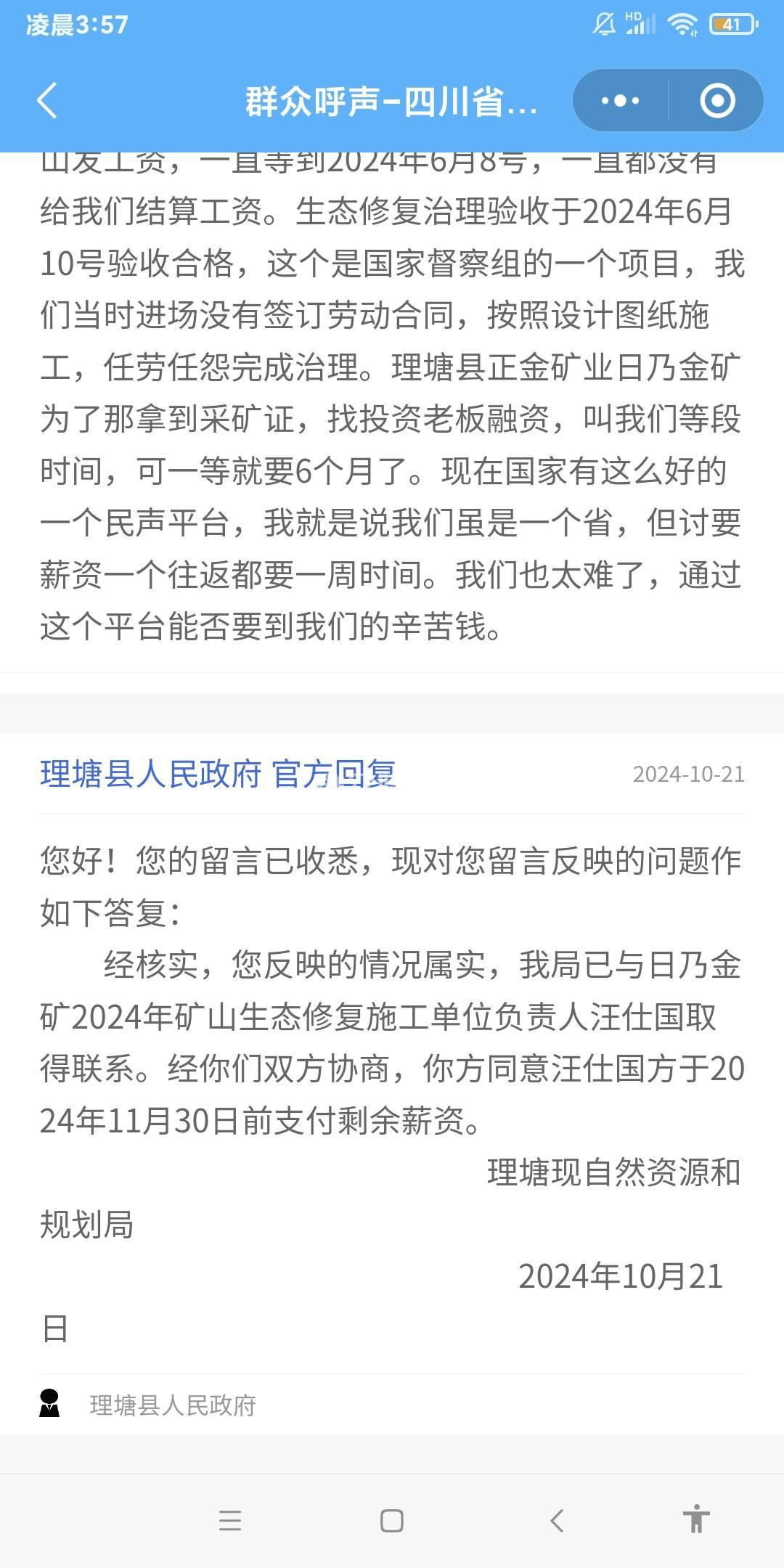 [投诉] 理塘县正金矿业日奶金矿2024年生态修复欠薪