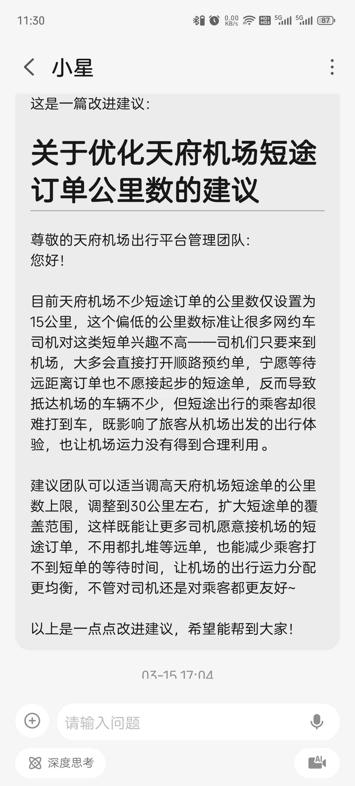 [建言] 投诉成都曹操出行运营商,希望优化改进