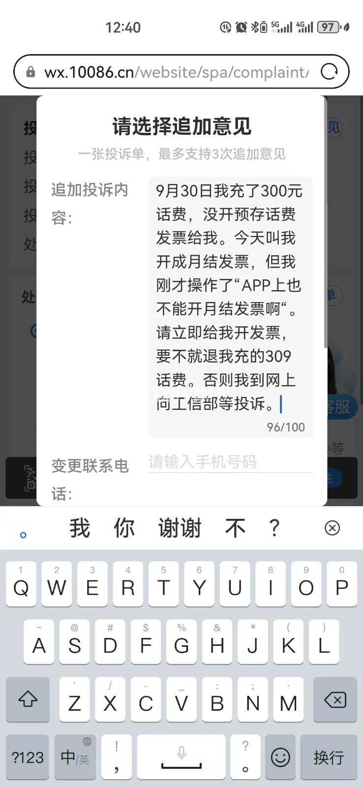 [投诉] 中国移动四川公司收费不向消费者提供发票