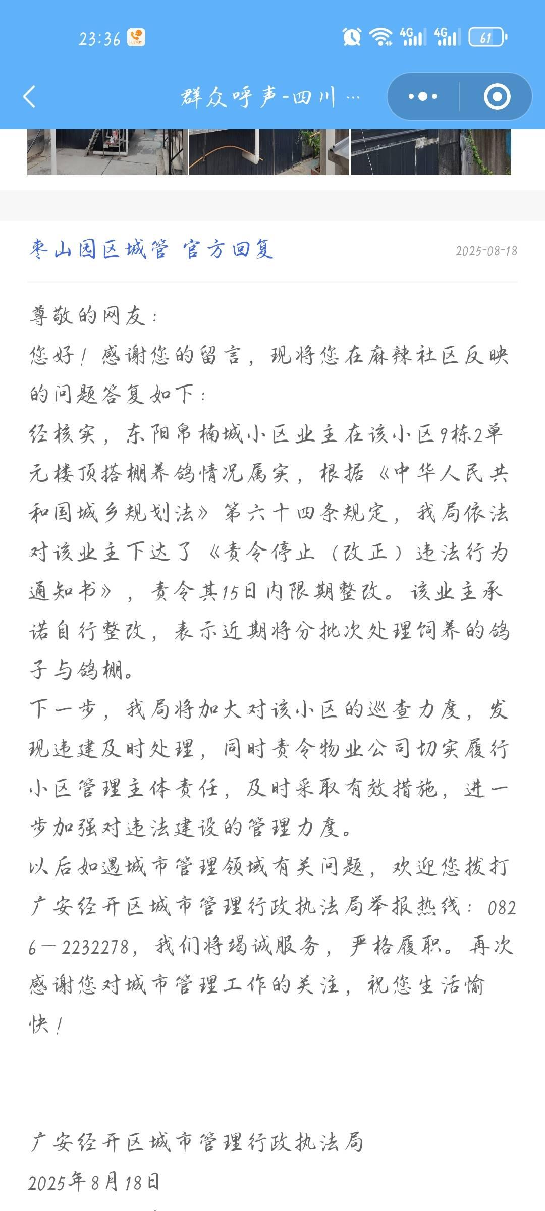 住房和城乡建设厅转派至广安市