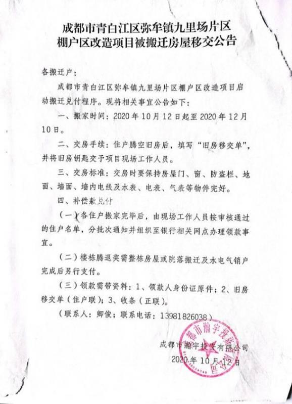 [咨询] 《旧房移交单》在青白江区是啥