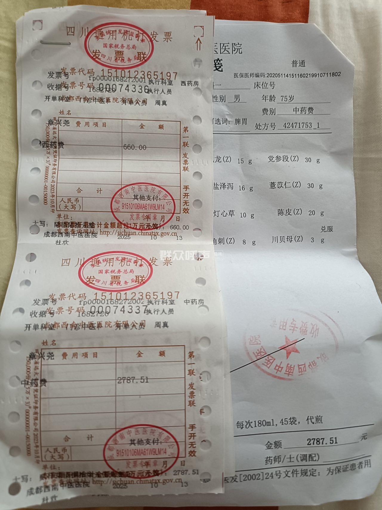 [投诉] 成都西南中医院虚假宣传治疗癌症乱收费