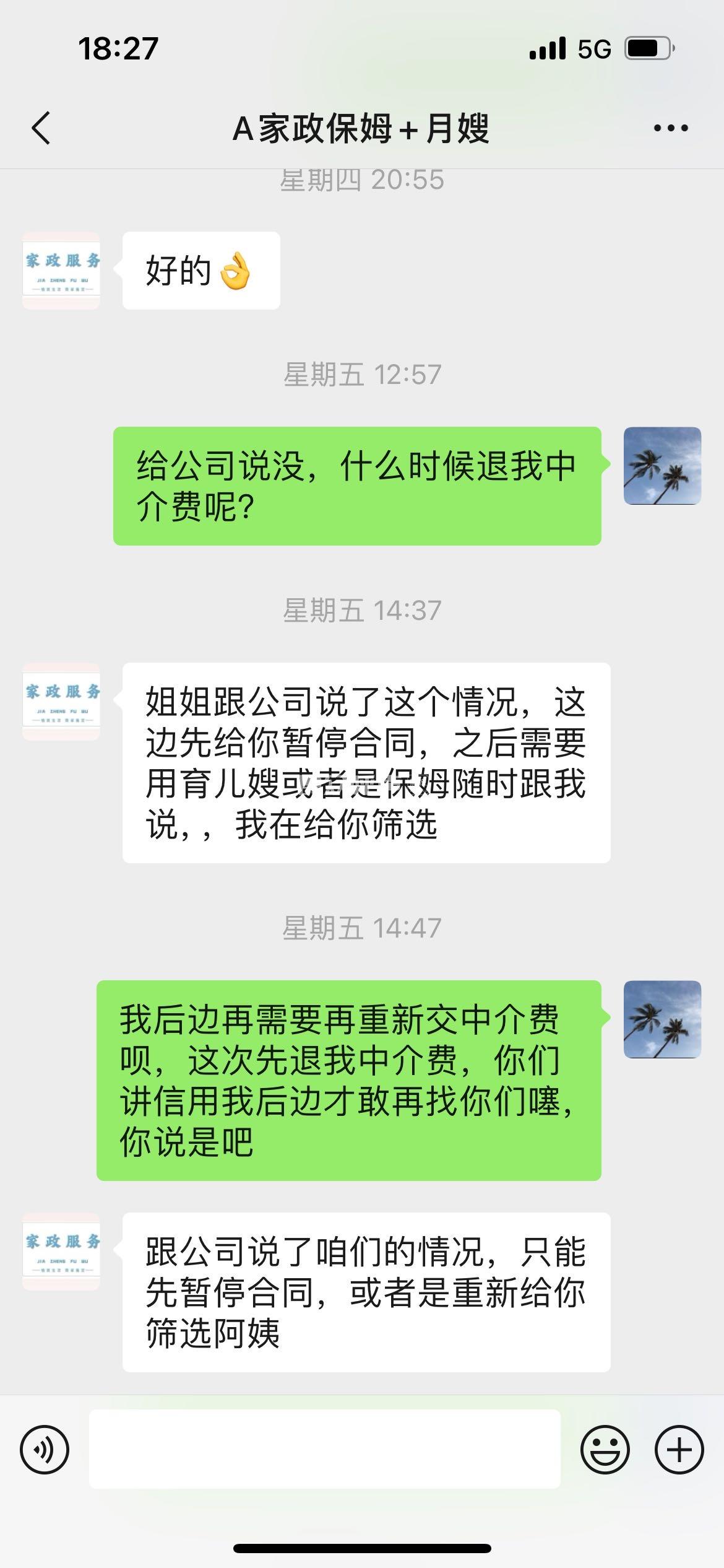 [投诉] 四川极简家政服务有限公司拒绝退我中介费