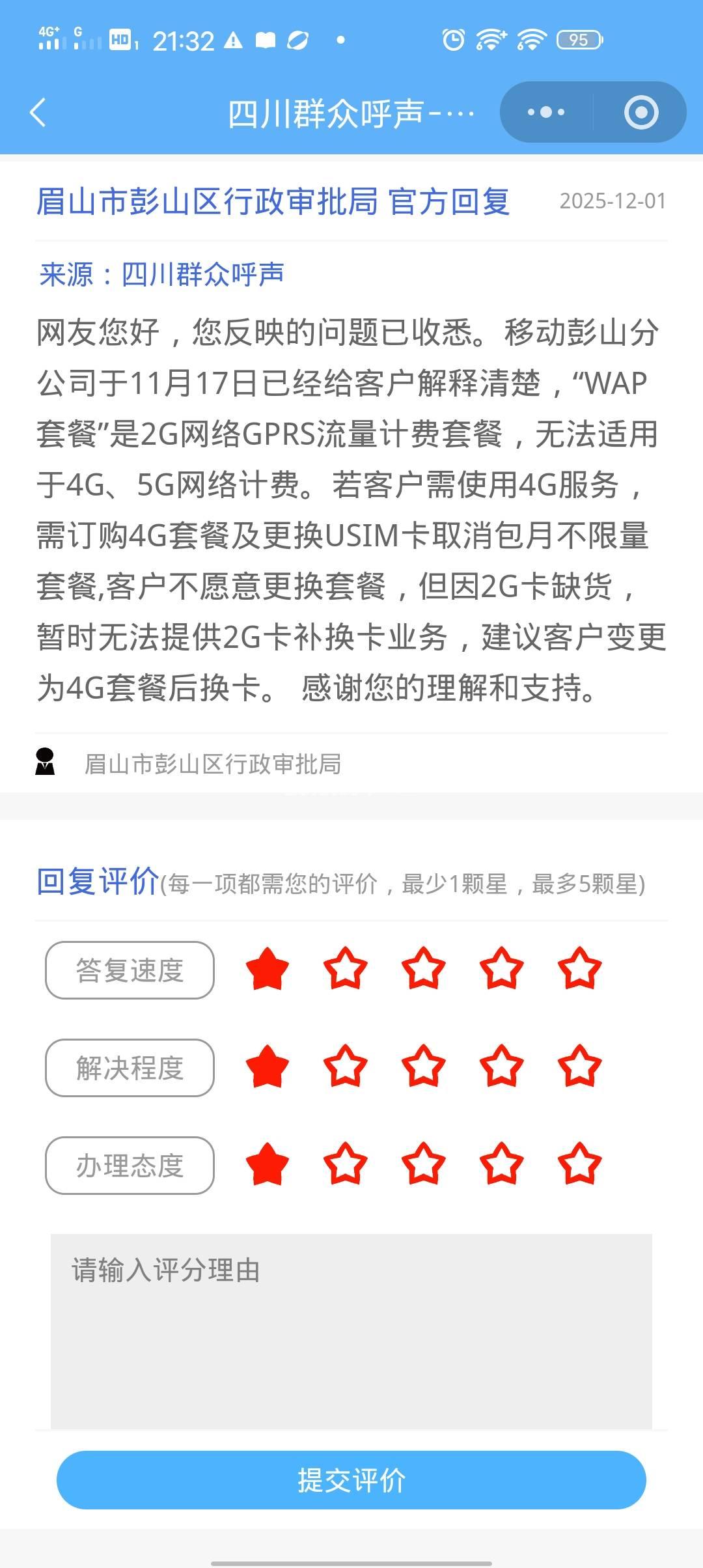 [求助] 请眉山市彭山区行政审批局明确阻我升网的是移动