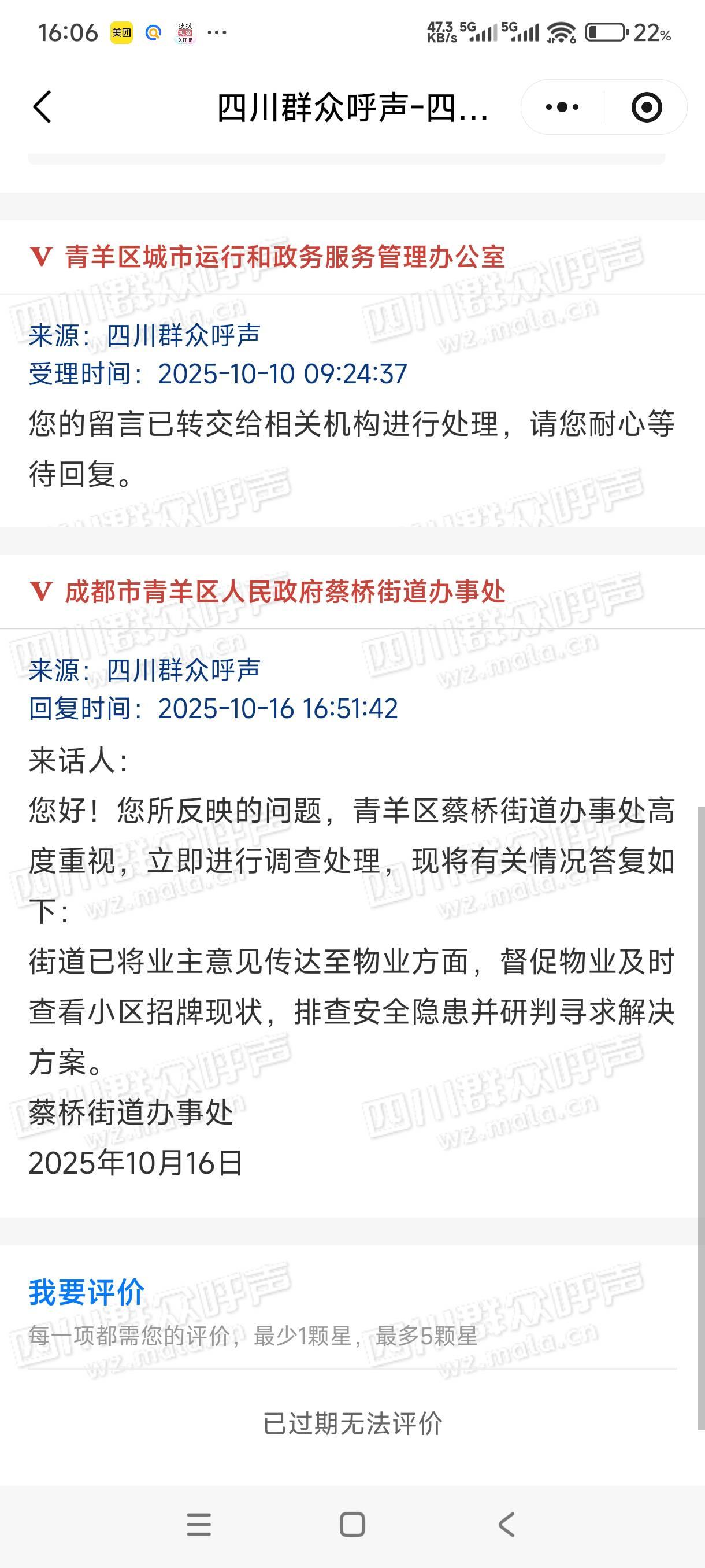 成都市城市运行和政务服务办已接收,转派至青羊区委书记信箱