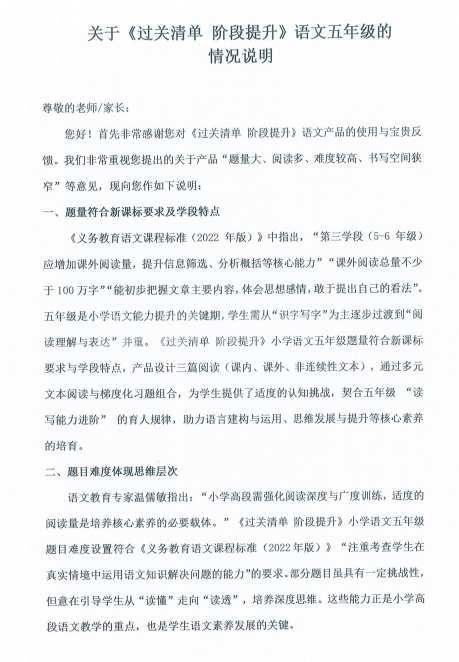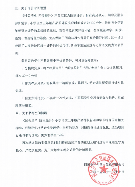[求助] 五年级《过关清单》试卷题量过大,书写空间过小