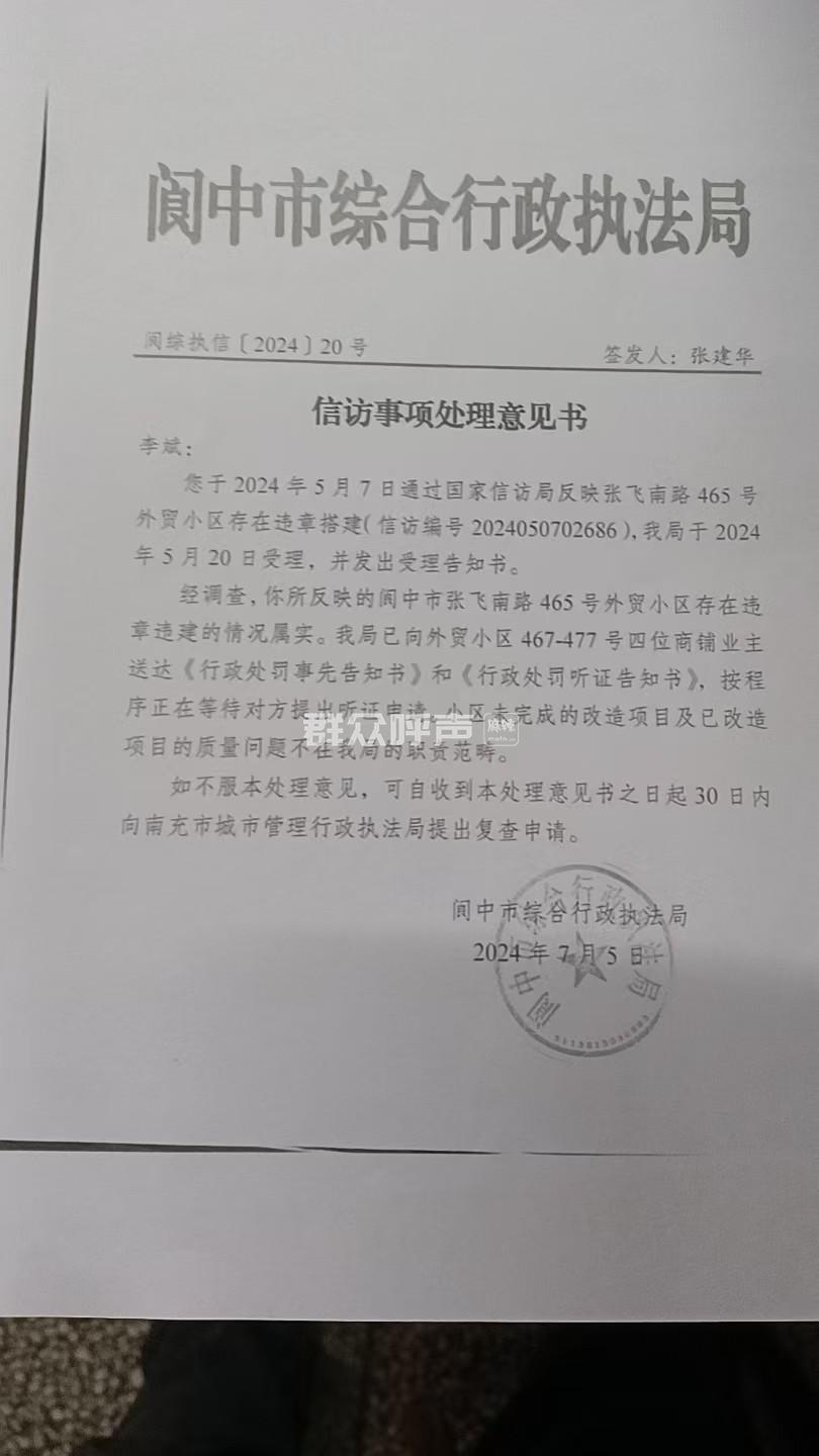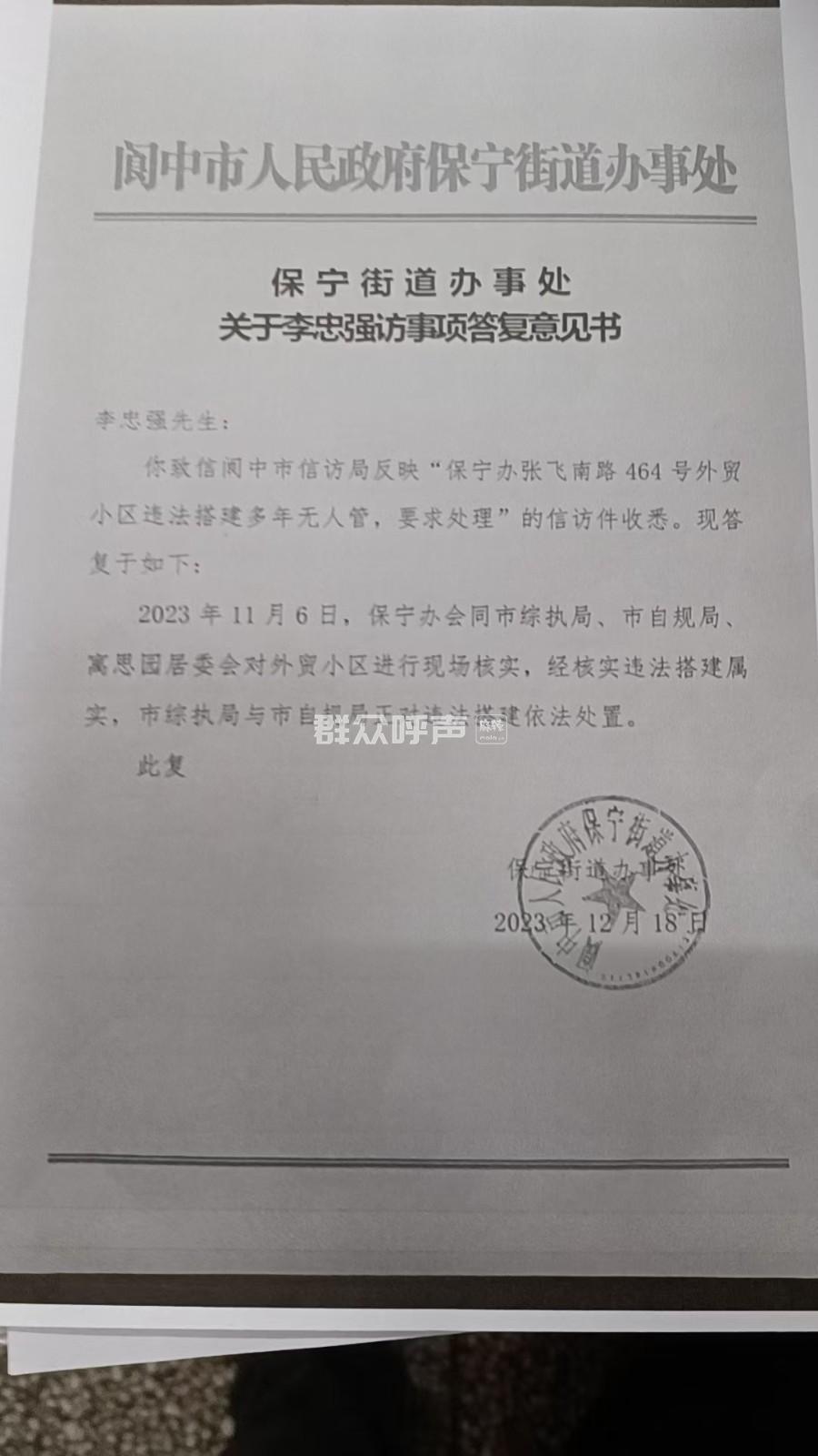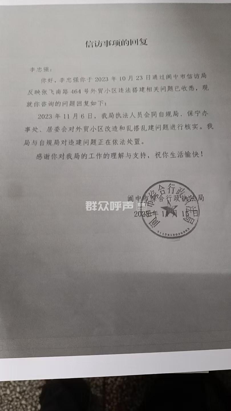 [投诉] 阆中综合行政执法局充当外贸小区违建保护伞