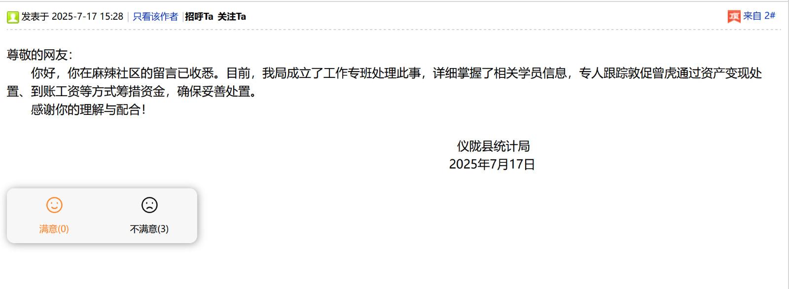 3. 留言信息将以您认证单位或机构作为作者展示,在回复正文中请以解决问题为重点,讲求质效,着力解决问题。