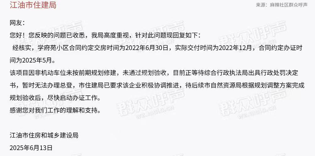 住房和城乡建设厅转派至绵阳市