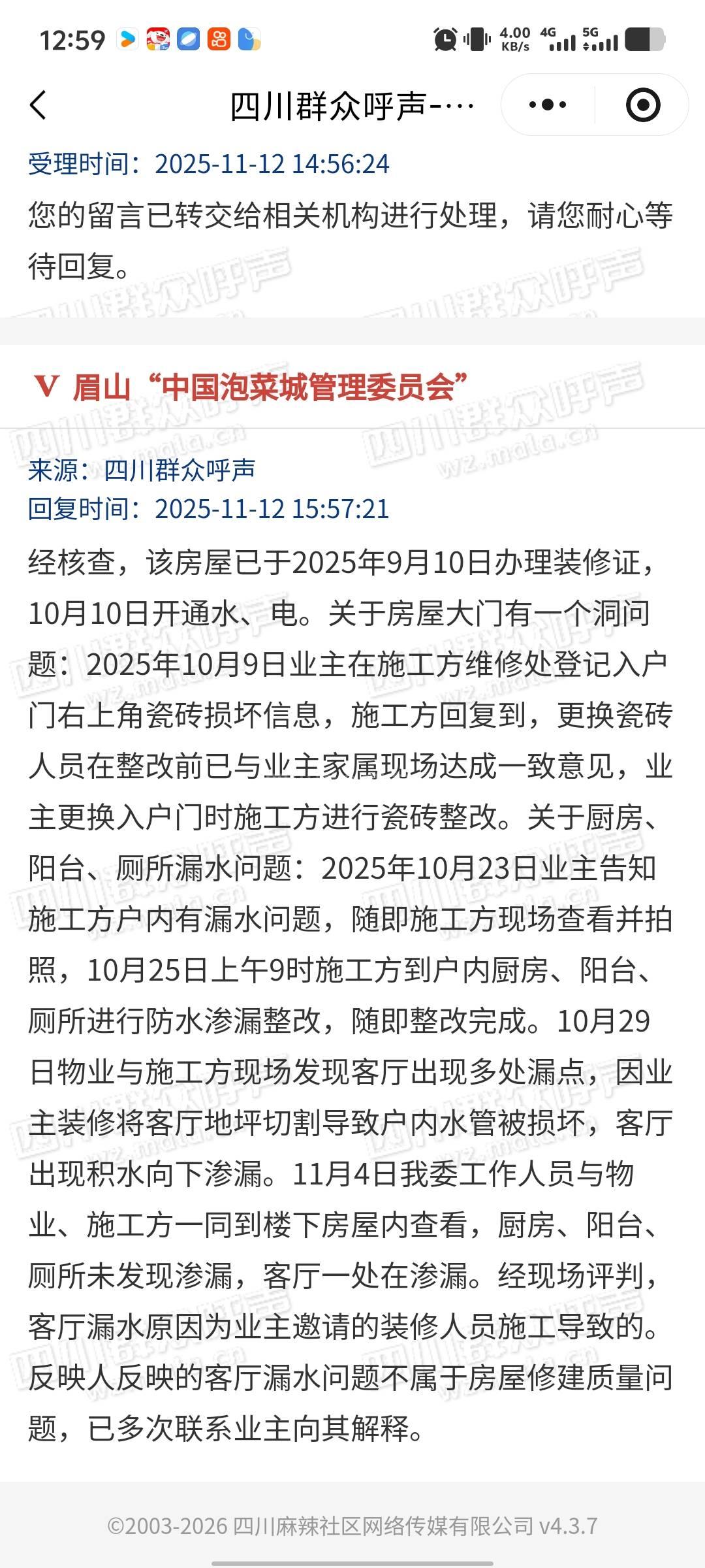 眉山12345已接收,转派至东坡区委书记信箱