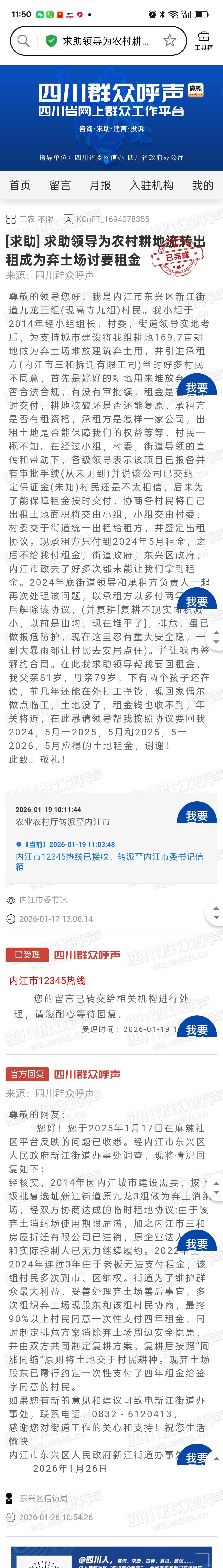 [求助] 再次求助领导为我讨要耕地流转为弃土场的租金