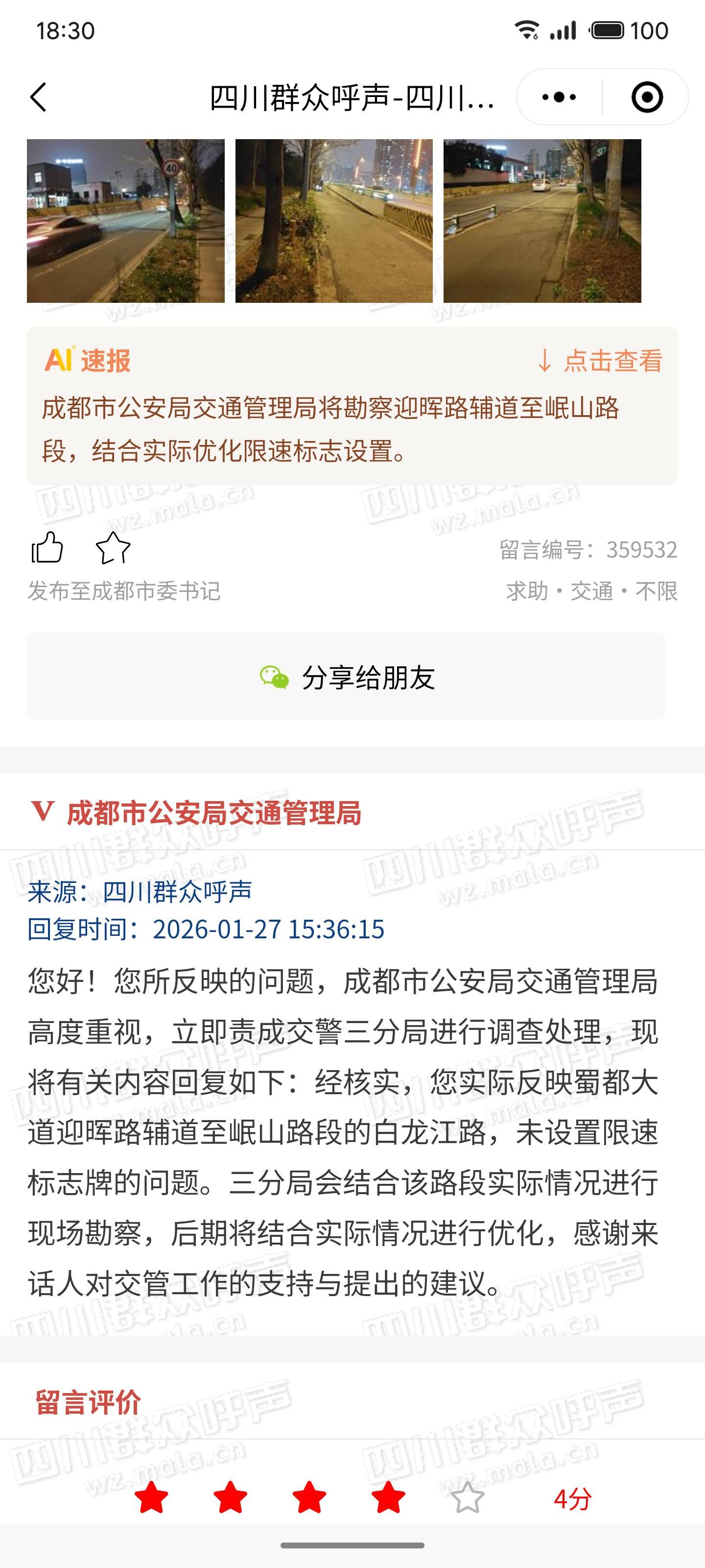 3. 留言信息将以您认证单位或机构作为作者展示,在回复正文中请以解决问题为重点,讲求质效,着力解决问题。