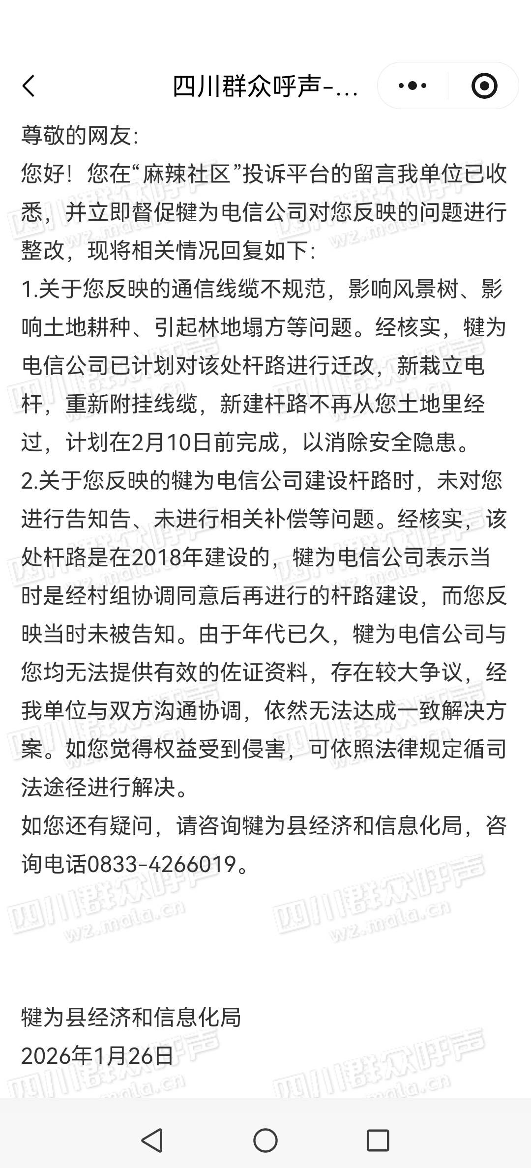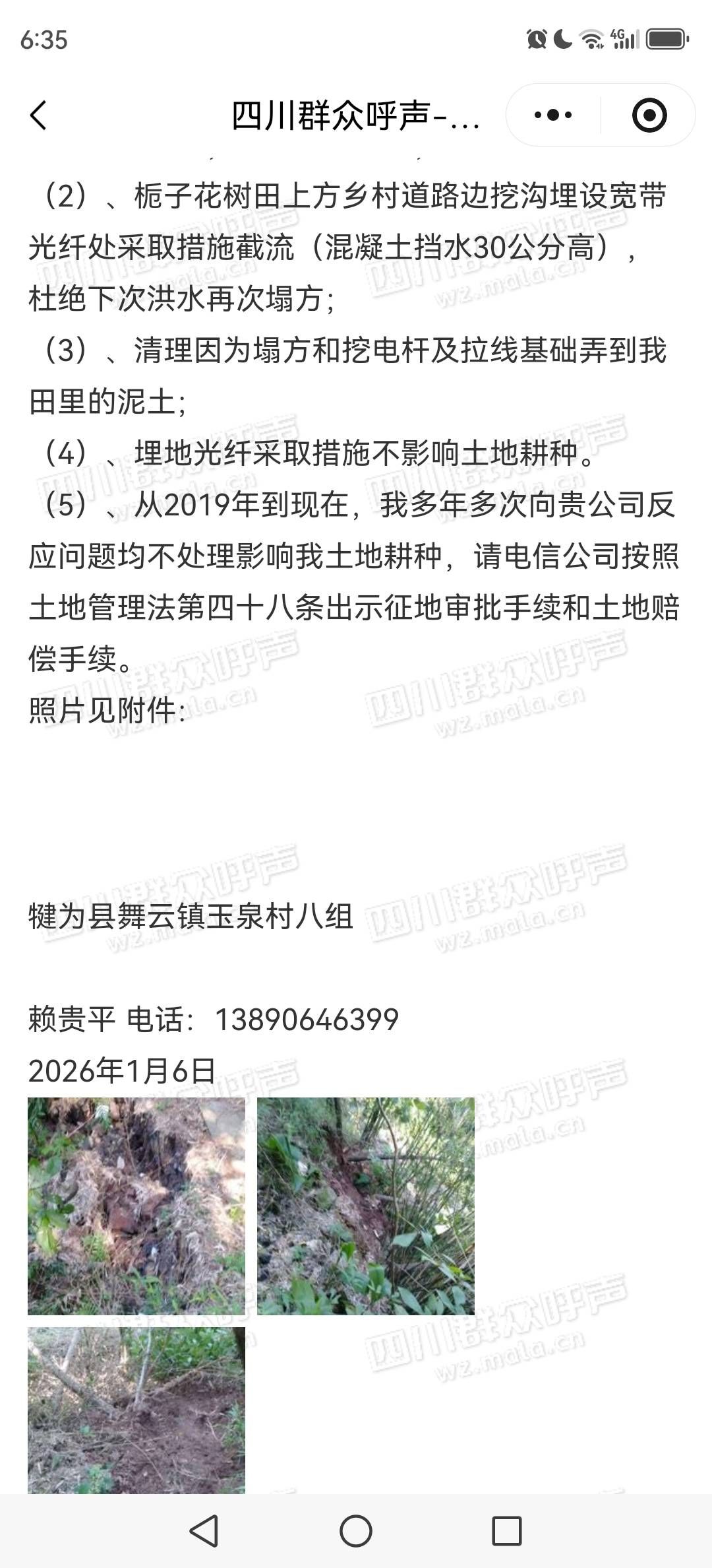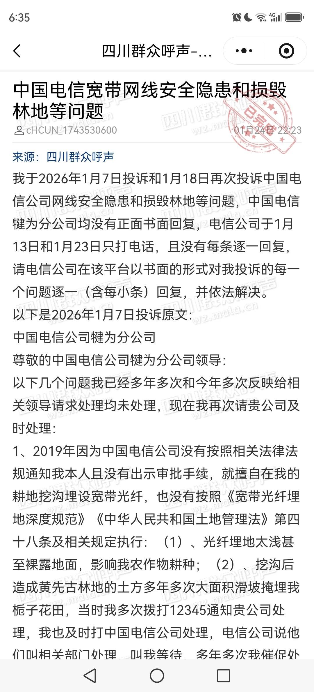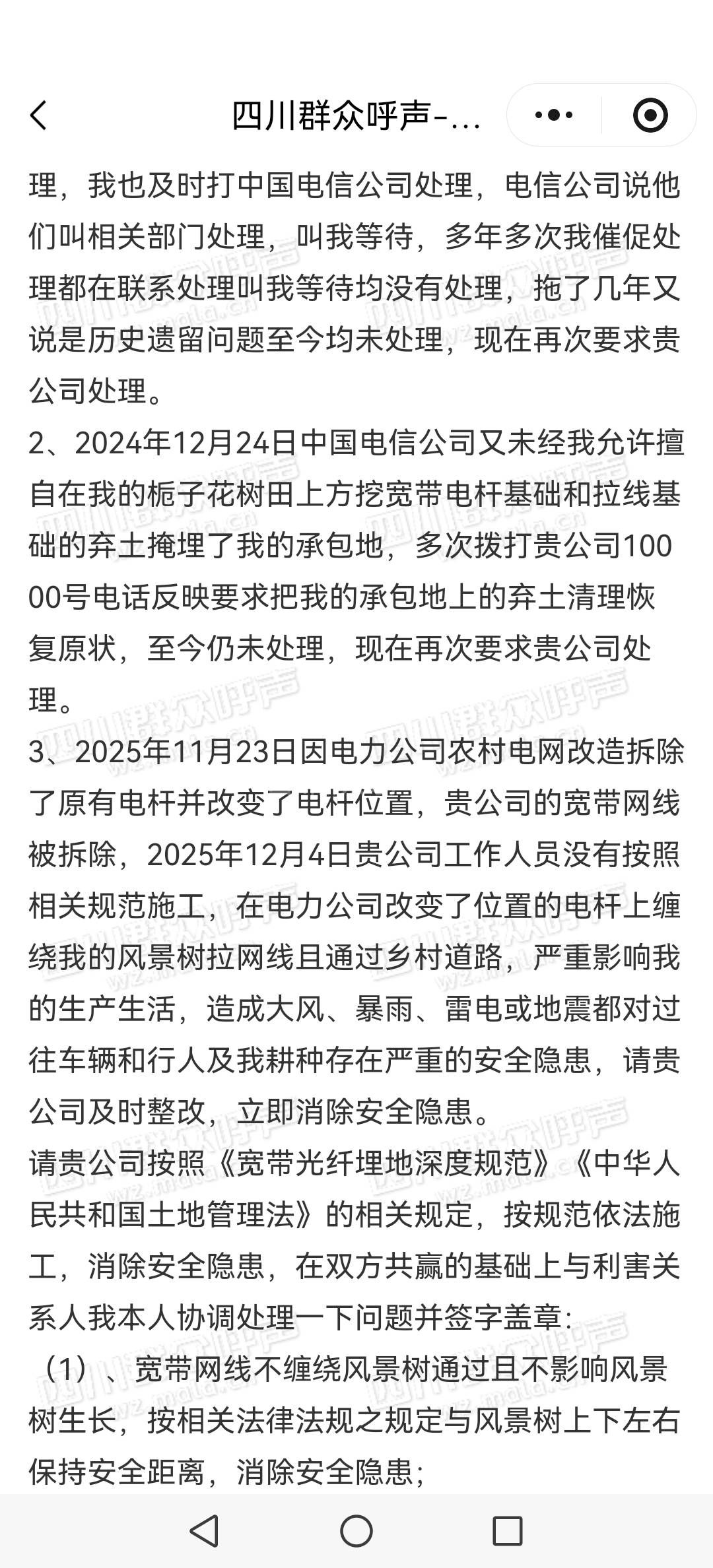 [咨询] 中国电信宽带网线安全隐患和损毁土地等问题