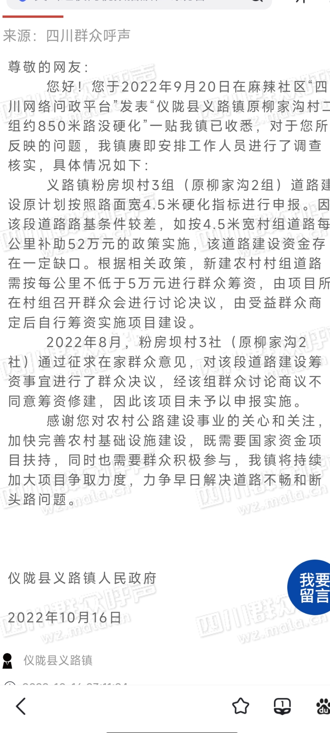 3. 留言信息将以您认证单位或机构作为作者展示,在回复正文中请以解决问题为重点,讲求质效,着力解决问题。