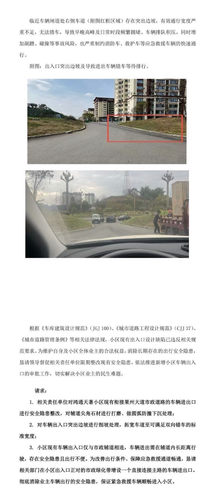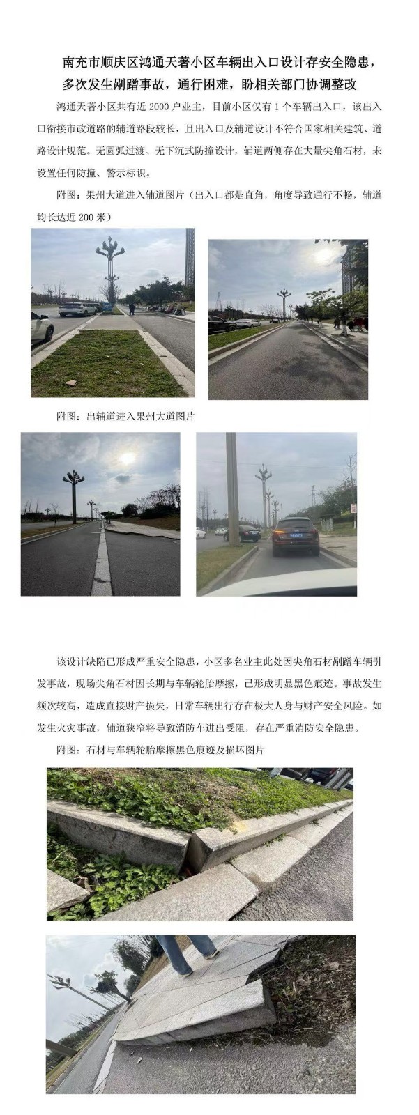 [求助] 南充顺庆鸿通天著车辆出入口设计存隐患求助