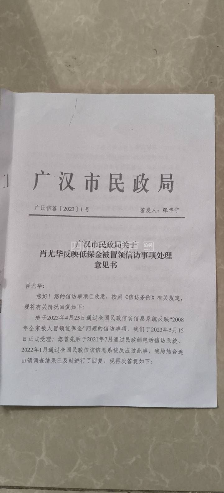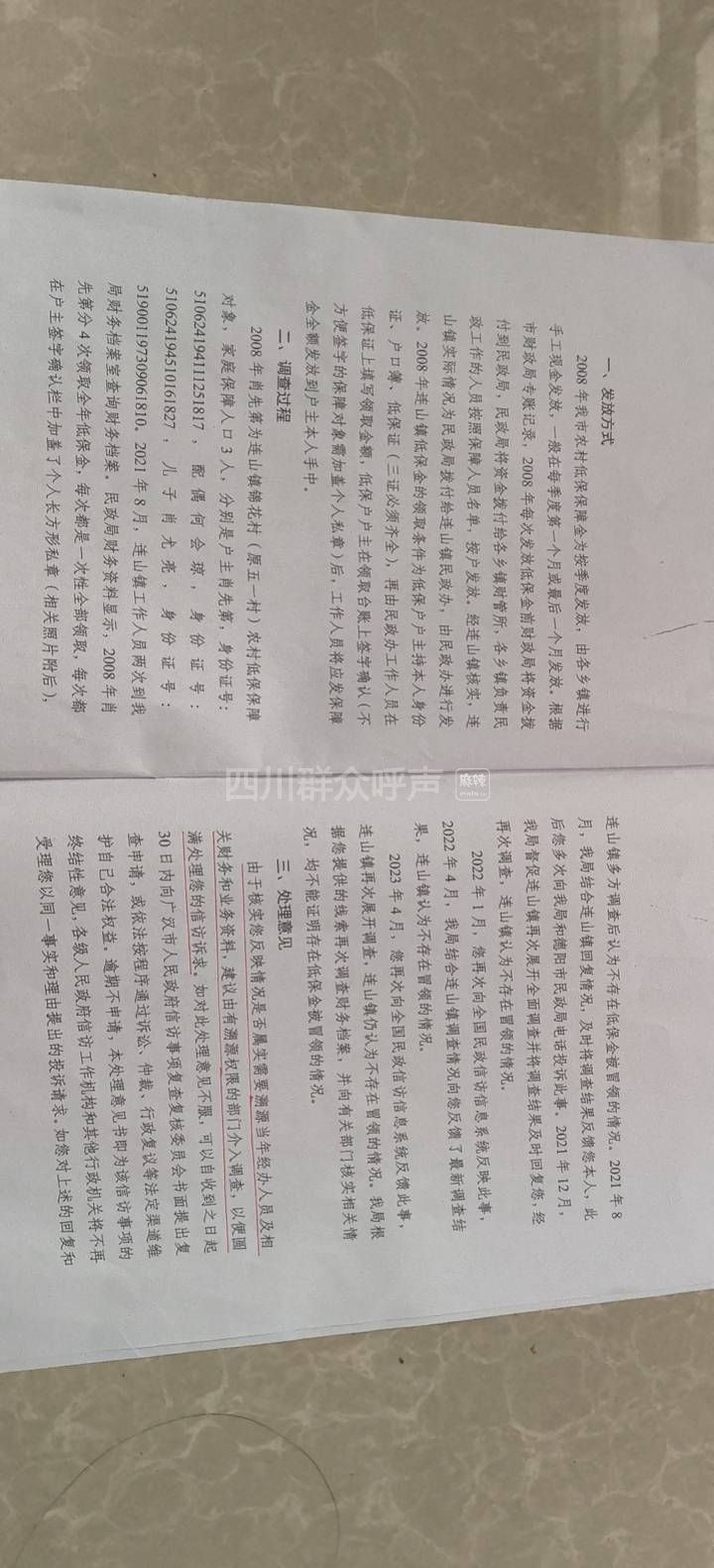 [求助] 广汉连山:低保被冒领,补助违规,恳请核查问题