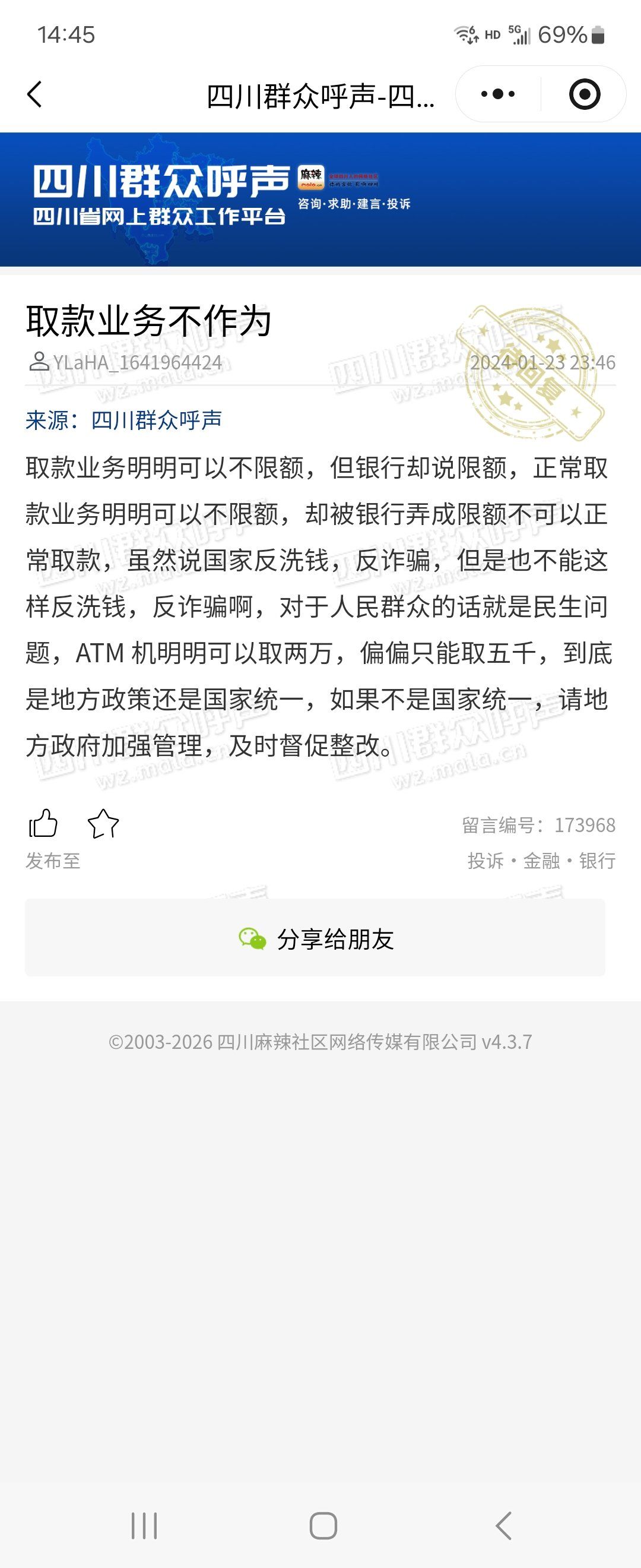两年时间一直没回复 已办结 投诉