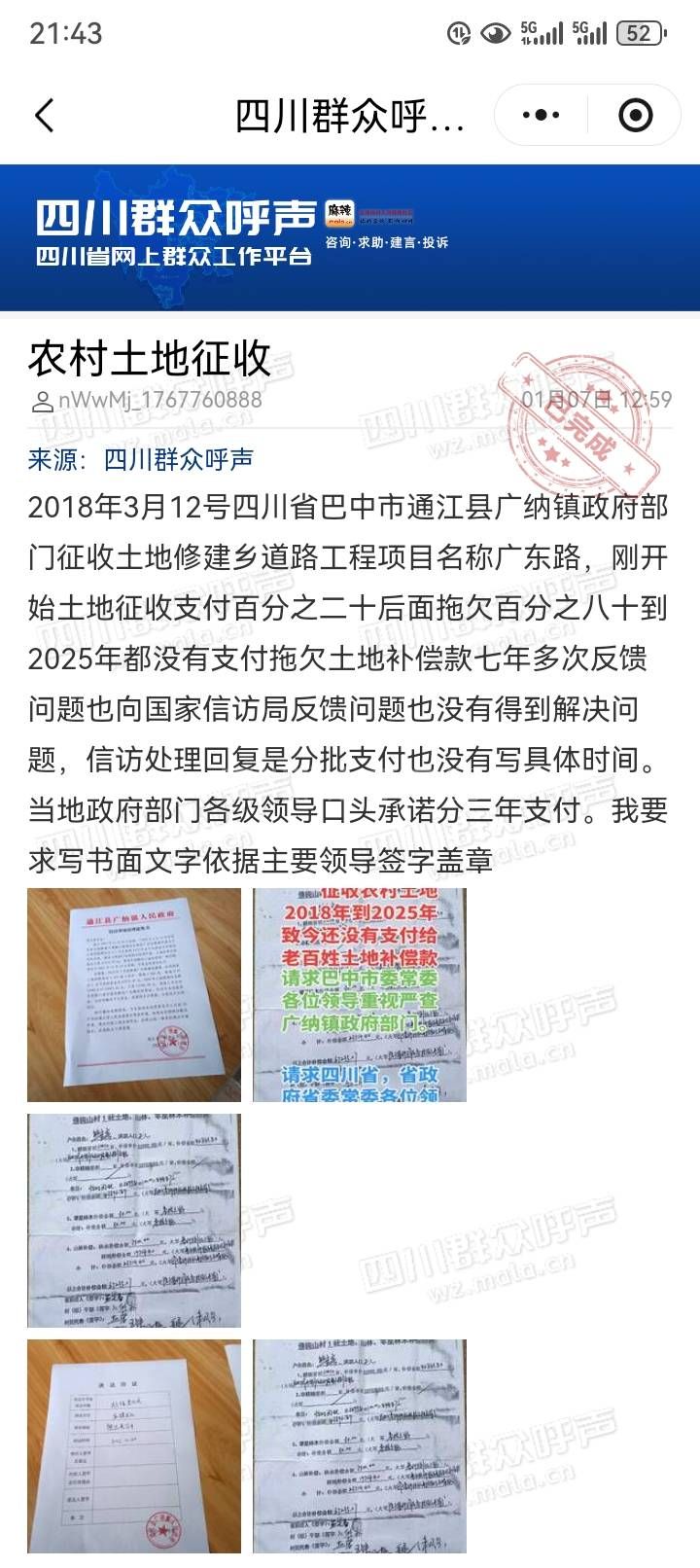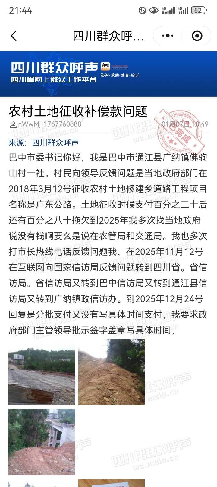 [投诉] 农村土地征收补偿款问题