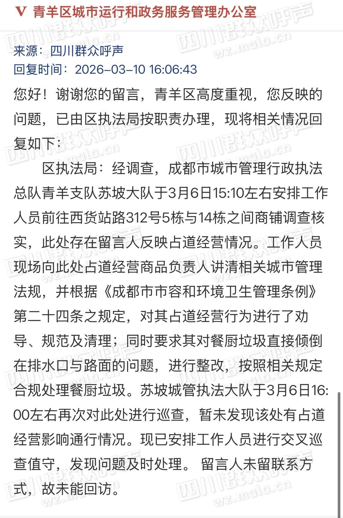 [投诉] 城管部门苏坡大队虚假整改,弄虚作假