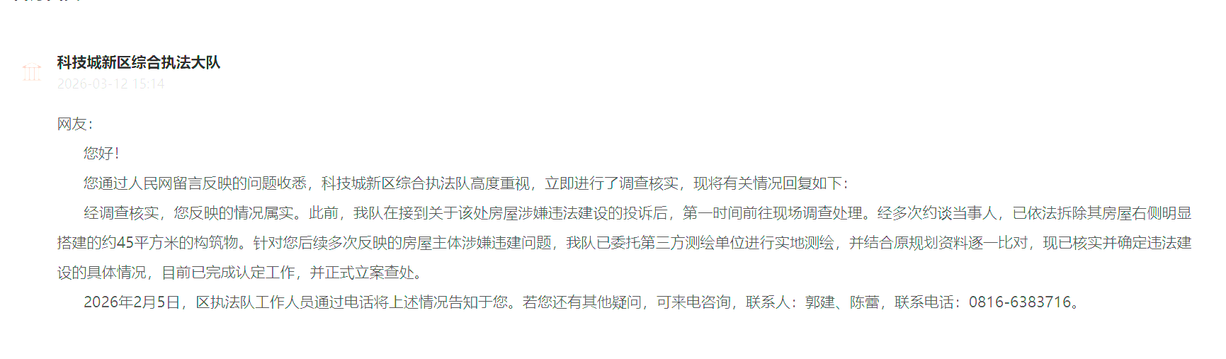 住房和城乡建设厅转派至绵阳市