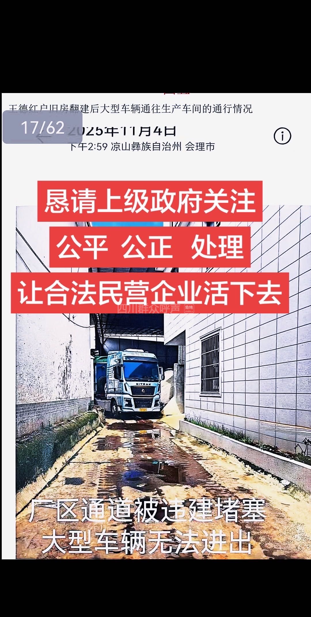 [投诉] 【求助督办】会理企业通道被堵致停产