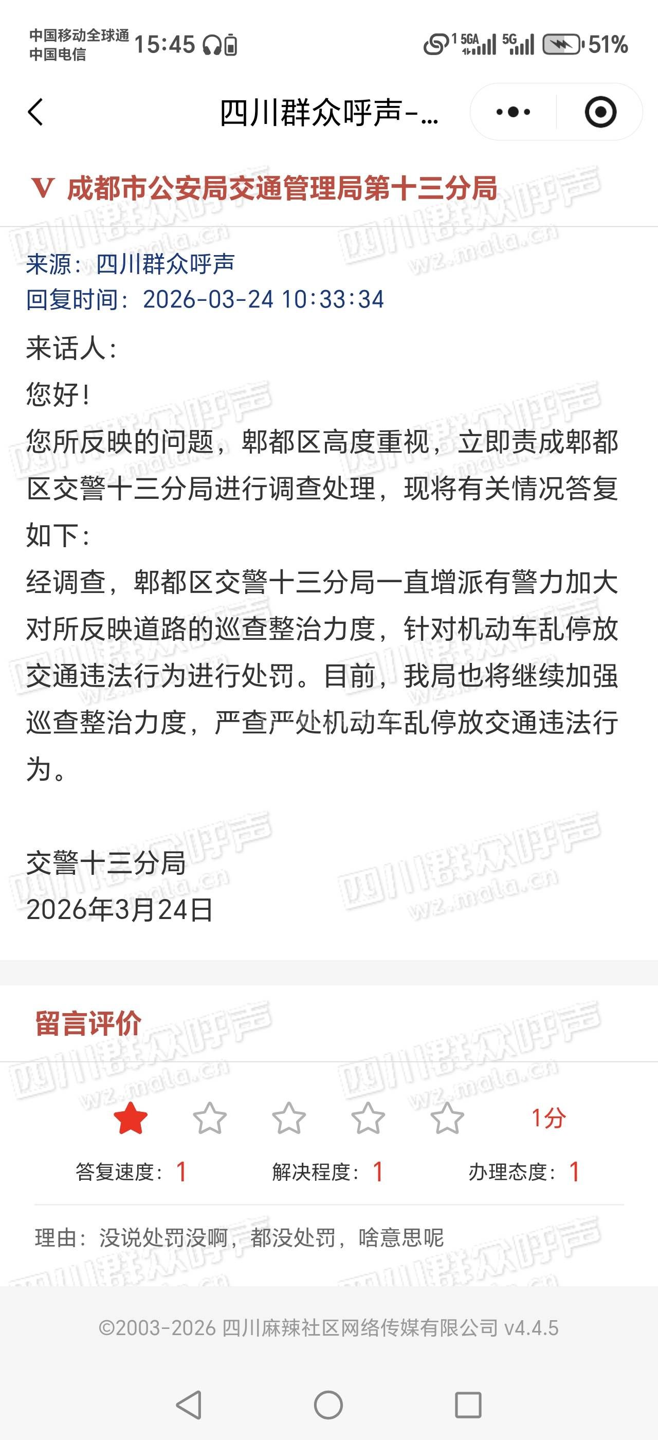 [投诉] 没说处罚结果啊