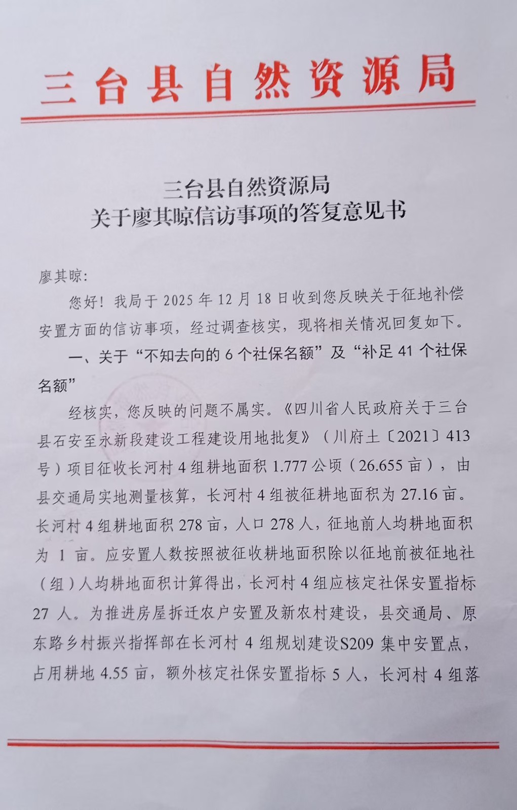 [投诉] 请依法依规核算划拨被征地村社失地农民社保名额