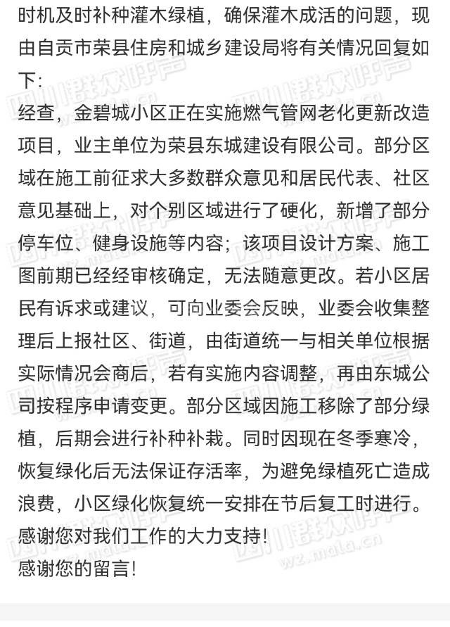 金碧城绿化补种 待处理 咨询