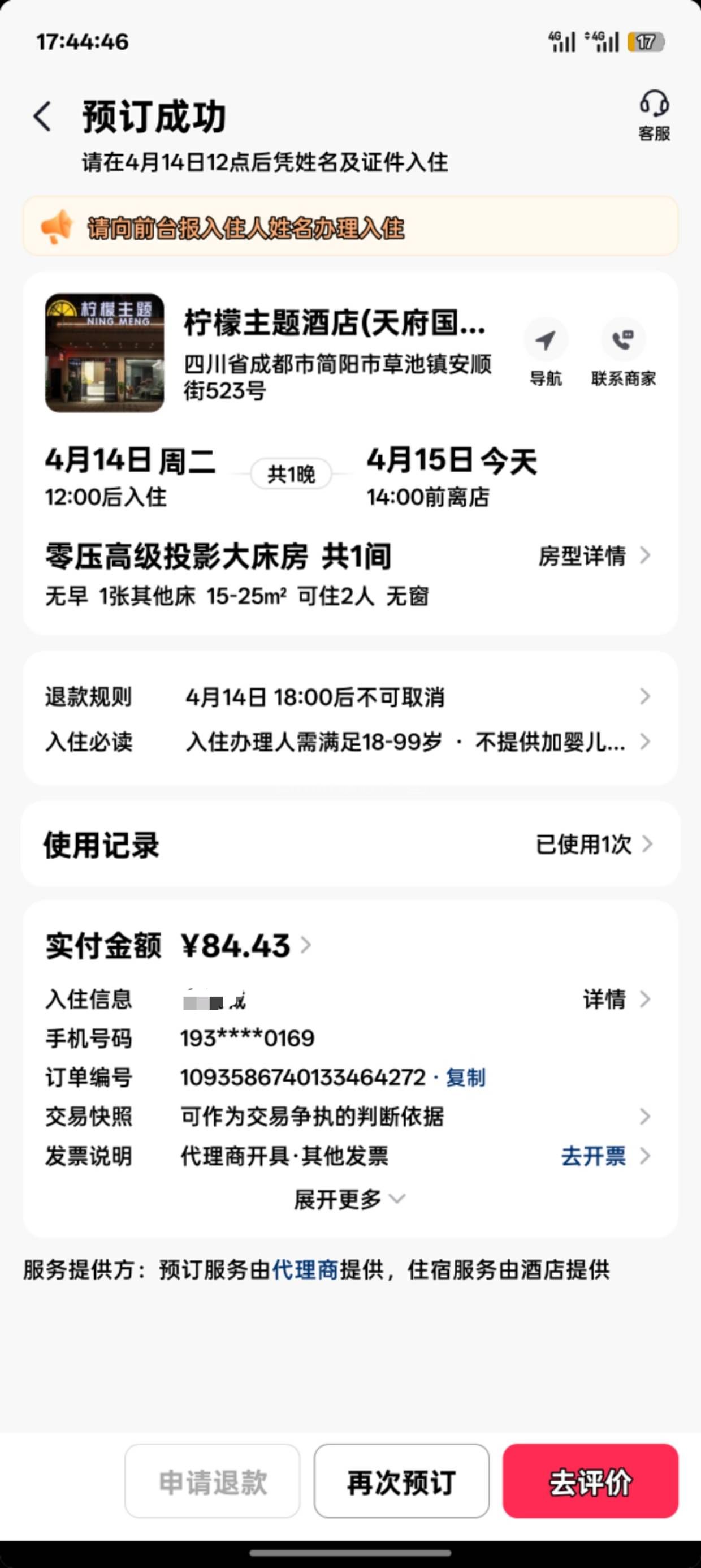 [咨询] 投诉简阳草池柠檬主题酒店(天府国际机场店)