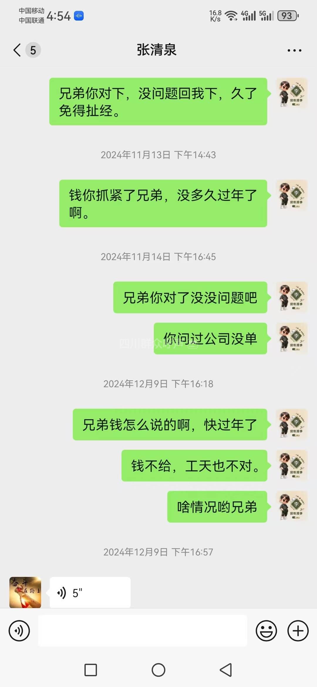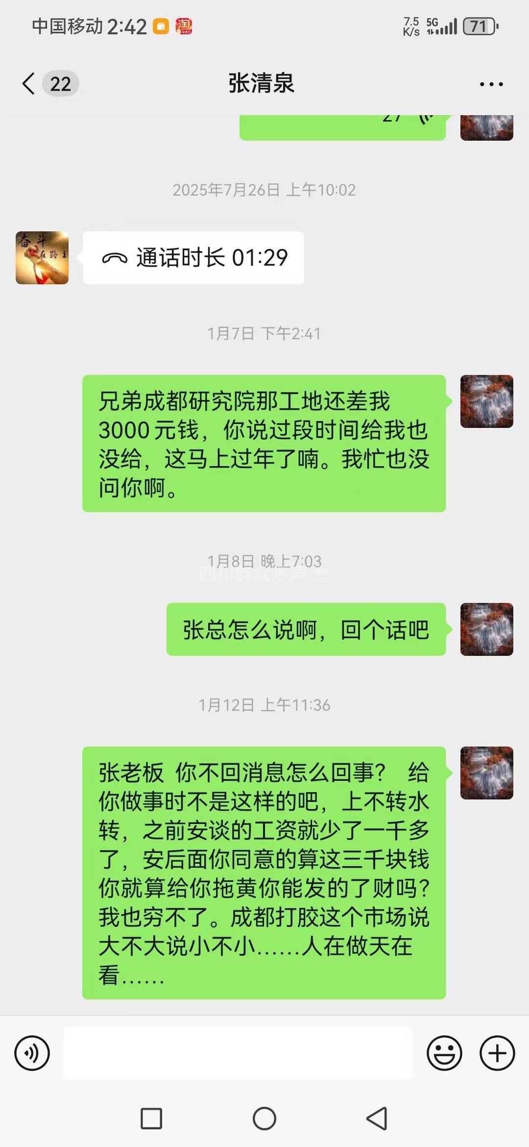 [投诉] 还拖欠我工资没给。