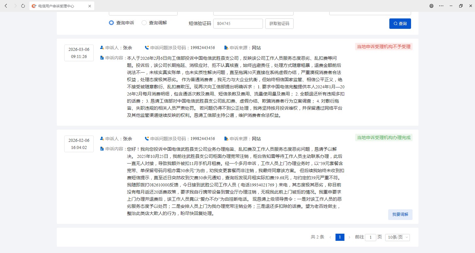 [投诉] 投诉中国电信武胜县支公司:乱扣费、敷衍投诉