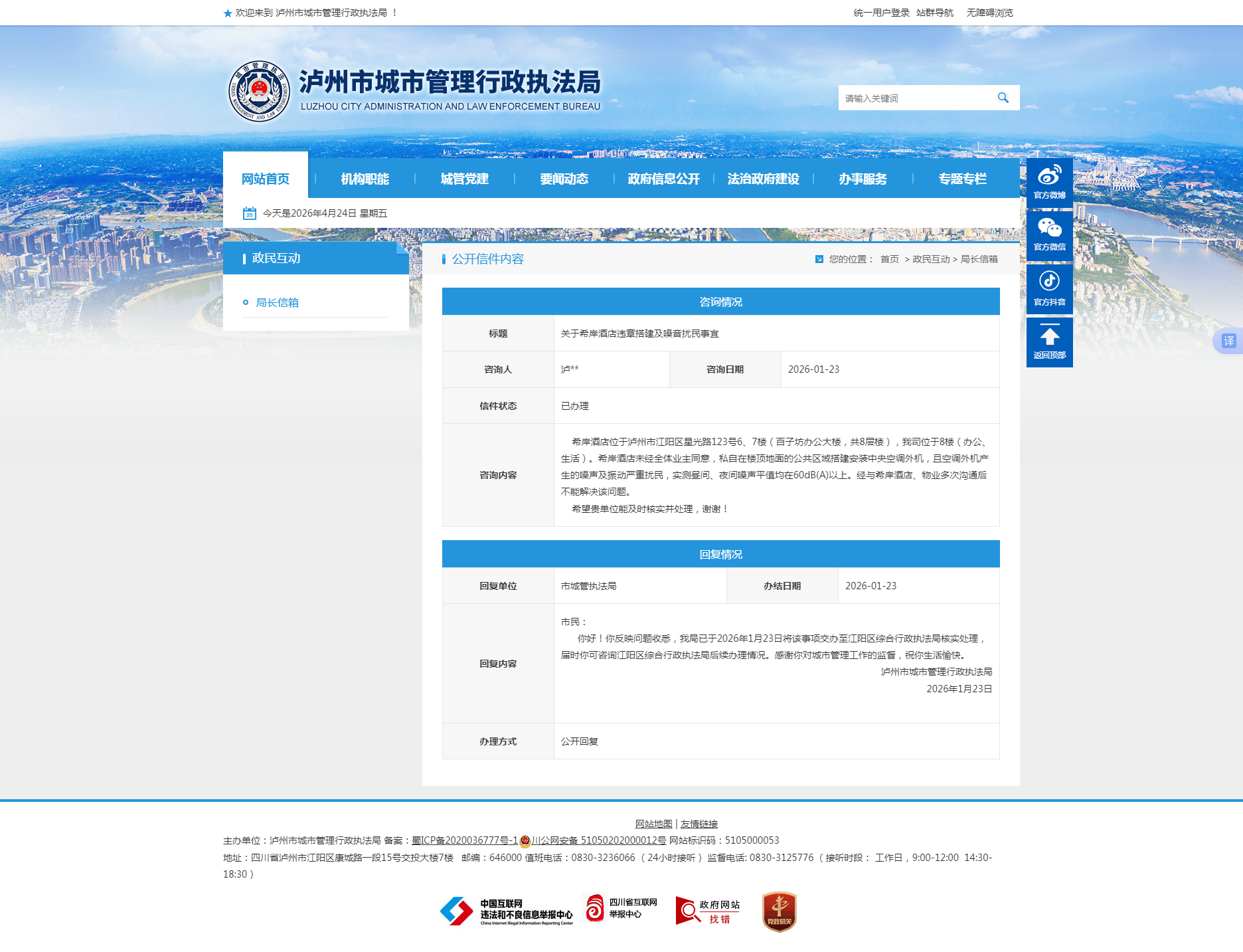 3. 留言信息将以您认证单位或机构作为作者展示,在回复正文中请以解决问题为重点,讲求质效,着力解决问题。