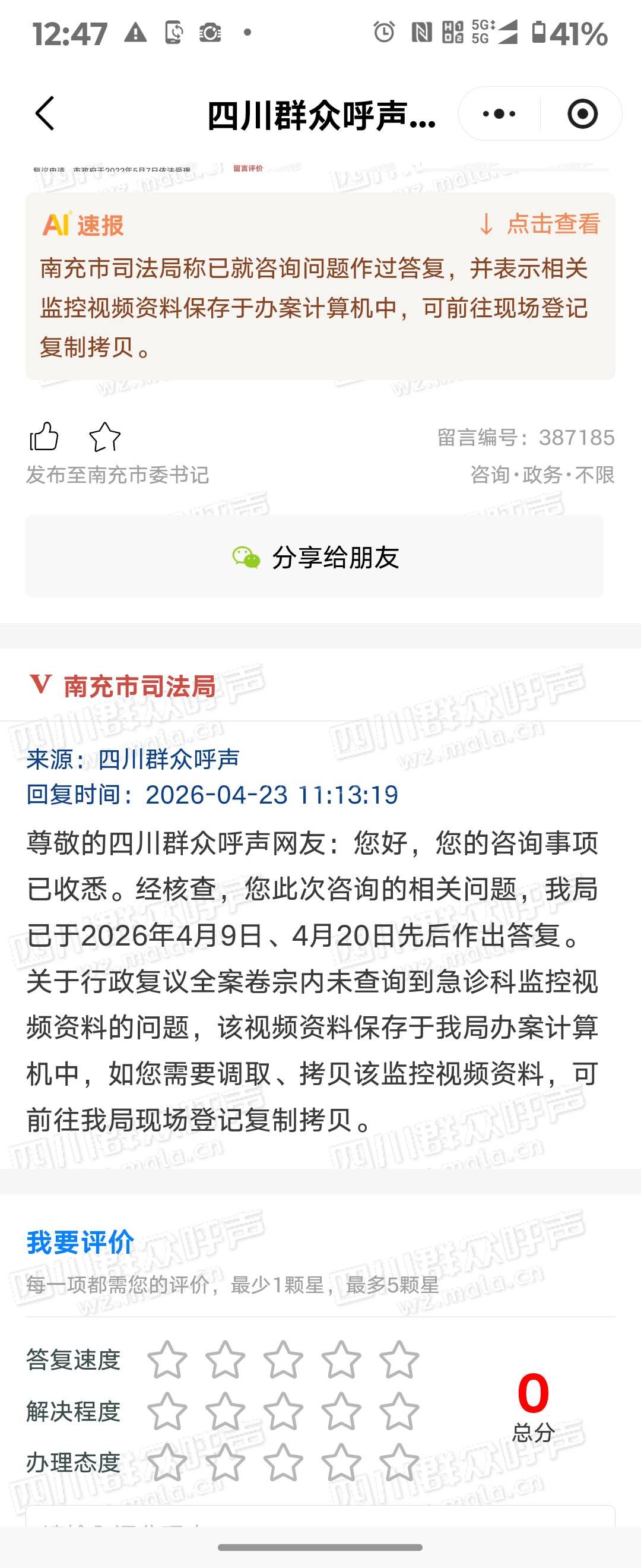 [投诉] 关于南充市司法局2026.4.23回复再控告